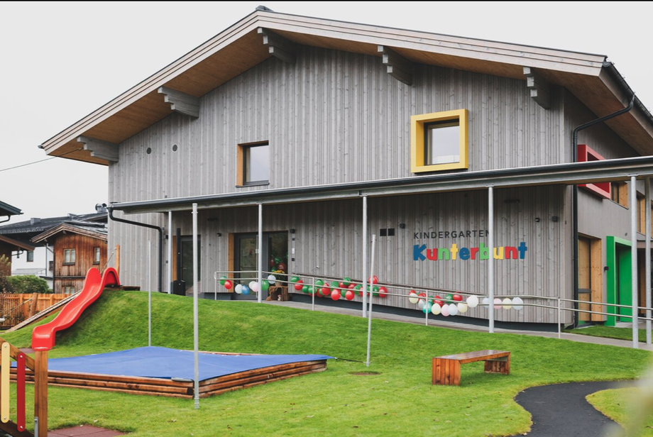 Der Betriebskindergarten Kunterbunt befindet sich in der Flugplatzstraße 24 in Zell am See-Schüttdorf, auf dem Gelände eines ehemaligen Lagergebäudes. Für den Neubau wurden über 2 Millionen Euro investiert. Das vom Architekturbüro Hasenauer.Architekten geplante Gebäude umfasst 512 Quadratmeter, ist in nachhaltiger Holzbauweise errichtet und bietet Platz für bis zu 48 Kinder im Alter von 1 bis 6 Jahren, gegliedert in zwei Kleinkindgruppen im Erdgeschoß und zwei alterserweiterten Gruppen im Obergeschoß. „Die liebevolle Betreuung und individuelle Förderung jedes Kindes stehen bei uns im Mittelpunkt. Wir schaffen eine Atmosphäre, in der sich sowohl Kinder als auch Eltern rundum wohlfühlen können", erklärt Alexandra Daxer, die pädagogische Leiterin des Kindergartens. Die Öffnungszeiten sind speziell auf die Tourismusbranche zugeschnitten: Montag bis Freitag von 7:30 bis 18:30 Uhr, bei Bedarf auch samstags und sonntags. Besonders familienfreundlich: Der Kindergarten ist ganzjährig geöffnet und schließt nur zwei Wochen zur Grundreinigung und Jahresplanung. Neben Firmenkooperationen sind auch private Anmeldungen für Kinder aus der Umgebung möglich – der Kindergarten erfüllt den Bildungsauftrag des Landes Salzburg und kann alle Kinder bis zur Schulpflicht betreuen.