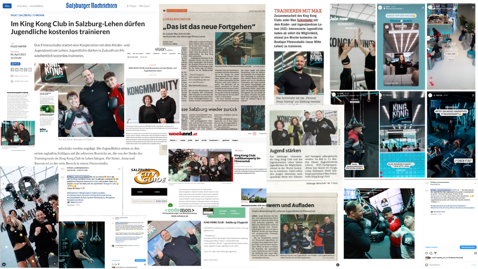 Seit seiner Gründung vor zehn Jahren hat sich der KING KONG CLUB zu einem der beliebtesten Boutique-Fitnessstudios in Salzburg entwickelt. Mit der neuen Location in der Schumacherstraße, im Herzen der Neuen Mitte Lehen, unterstreicht der Club seinen Anspruch auf Innovation und Gemeinschaft. Neben seinem vielfältigen Fitnessangebot liegt dem KING KONG CLUB auch soziales Engagement am Herzen. Dies zeigt sich in der Kooperation mit dem Jugendzentrum Lehen, bei der Jugendliche einmal wöchentlich kostenlos trainieren können. Durch professionelles Coaching erleben die Jugendlichen die Werte des Sports hautnah: Fairplay, Teamgeist und Toleranz. Ziel der Kommunikationsaktivitäten rund um das Jubiläumsfest war es, diese Werte und die Bedeutung des KING KONG CLUBs als festen Bestandteil der Salzburger Fitnessszene zu unterstreichen.